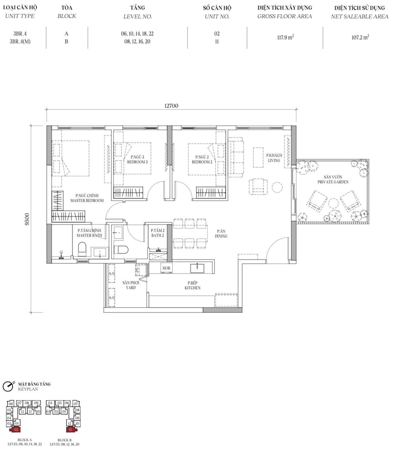 Layout 3 phòng ngủ (3PN) Orchard Grand Sycamore